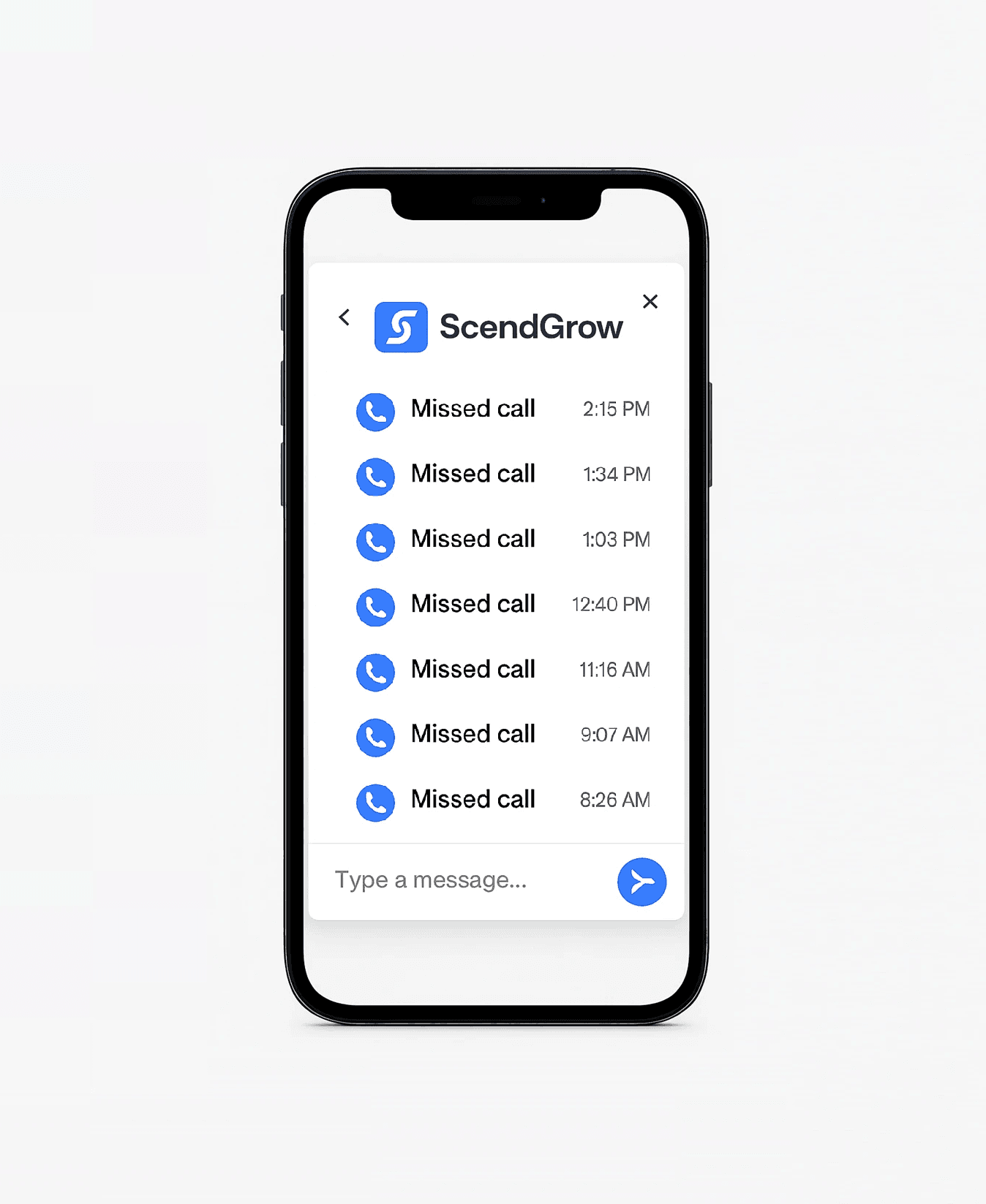 ScendGrow detects the missed call and instantly sends a text: "Sorry I missed you! How can I help?"
